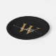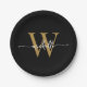 Modern Black Gold Custom Monogram Name Script Paper Plate