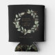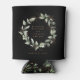 Modern Black Gold Eucalyptus Wreath Wedding Can Cooler