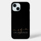 Modern Black Gold Feminine Script Heart Monogrammed Phone Case. Easily personalise this modern elegant phone case with your custom monogram and name.