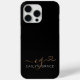 Modern Black Gold Feminine Script Heart Monogrammed Phone Case. Easily personalise this modern elegant phone case with your custom monogram and name. The design also features pretty swashes and a hand drawn heart.