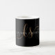 Modern Black Gold Feminine Script Monogrammed coffee mug. Easily personalize this modern elegant mug with your custom monogram and name.
