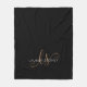 Modern Black Gold Feminine Script Monogrammed fleece blanket. Easily personalize this modern elegant fleece blanket with your custom monogram and name.