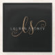 Modern Black Gold Feminine Script Monogrammed Glass Coaster