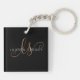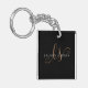 Modern Black Gold Feminine Script Monogrammed keychain. Easily personalise this modern elegant keychain with your custom monogram and name.