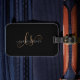 Modern Black Gold Feminine Script Monogrammed Luggage Tag. Easily personalize this modern elegant luggage tag with your custom monogram and name.
