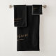 Modern Black Gold Feminine Script Name Bath Towel Set
