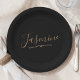 Modern Black Gold Feminine Script Name Paper Plate