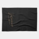 Modern Black Gold Feminine Script Name kitchen towel. Easily personalise this modern elegant kitchen towel with your custom name.