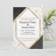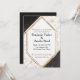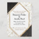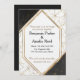 Chic black and white wedding invitation with modern gold geometric frame and elegant typography, featuring fully editable couple names, wedding date, time, venue, and reception details for a contemporary formal celebration.