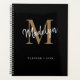 Modern Black Gold Girly Monogram Script Name Planner. Easily personalise this modern elegant planner with your custom monogram and name.