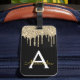 Black and Gold Glitter and Sparkle Monogram Name and Initial Luggage Tag. This bag tag is perfect for Wedding or Bridal Shower Favour, Honeymoon, Back to School, Beauty Salon Work, or Travelling.