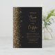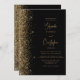 The left-hand edge of this elegant modern wedding invitation features a gold faux glitter design. The customisable text combines gold-coloured script and sans serif fonts on a black background. The reverse side features a matching black and gold glitter design.