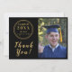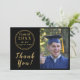 Thank your friends and loved ones for attending your graduation or giving you a special gift with this modern gold & black graduation thank you card. This thank you card for graduation features a black background with gold text. Make it memorable when you put a photo of your grad and write a personal thank you note with your signature.
