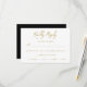 This modern wedding RSVP card features a hand lettered gold script with the word "RSVP" on a black background. The front of the card has all of your RSVP details inlcuding meal choices in faux gold caligraqphy on a simple white background. Please check out our I Love Weddingz shop to find more selections in this collection. Designed by Susan Coffey.