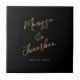 This personalised modern wedding tile features the bride and grooms names and wedding date in hand lettered faux gold script on a simple black background. Makes a uniqe gift for newlyweds. Designed by Susan Coffey.