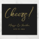 These modern custom wedding sparkling wine bottle labels feature the word "Cheers!" with the bride's and groom's first names and wedding date in hand lettered faux gold script on a simple black background. Please check out our I Love Weddingz shop to find more selections in this collection. Designed by Susan Coffey.