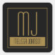 Modern Black & Gold Initial Monogram Square Sticker