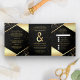 Modern Black Gold Marble Ampersand Wedding Tri-Fold Invitation