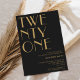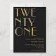Modern 21st birthday invitation featuring elegant chic typography and minimalist design in black gold colour.