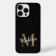 Modern Black Gold Monogram Feminine Script Name iPhone Case