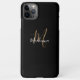 Modern Black Gold Monogram Girly Script Name Chic iPhone Case