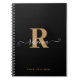 Modern Black Gold Monogram Hand Script Name Notebook