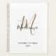 Modern Black Gold Monogram Initial Script Name Planner . Personalise this elegant monogrammed white planner notebook design with your name and monogram initial in a chic, trendy, and girly script typography. Perfect gift for her.
