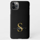 Modern Black Gold Monogram Stylish Script Name iPhone Case