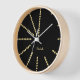 Custom, personalised, modern, unique, boho, contemporary, minimalist, snazzy cool classy design faux gold triangles hours, art deco retro faux gold script / typography black acrylic round wall clock with high-impact plexiglass crystal face and natural wood frame, for your nursery, kitchen, living room, bathroom, kids corner, home, office. Simply type in your name / the name of bride & groom / husband & wife / family name, to customise. Makes a great custom gift for birthday, wedding, anniversary, holidays, christmas, new years, and more, for your loved ones, mum, dad, brother, sister, son, daughter, husband, wife, bride, groom, grandpa, grandma, family and friends.