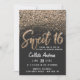 Modern Black Gold Scattered Glitter Ombre Sweet 16 Invitation