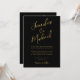 These modern custom all in one wedding invitations feature a hand lettered faux gold calligraphy script on a simple black background. Personalise with your names and wedding date along with all your wedding details on the front and back of the card. Best of wishes for your wedding and marriage! Designed by Susan Coffey.