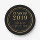 Modern Black Gold Script Graduation Class of 2019 Paper Plate