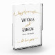Add your own special touch to this modern design which features the words "happily ever after, and, let love grow" set in flowing gold script typography including long tail glyphs and contrasting formal black text. Customise it with your names and wedding date. Please contact me if you need help or a custom order.