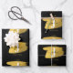 Modern Black & Gold Script Monogram Initial Wrapping Paper Sheet