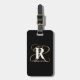 Modern Black Gold Script Monogram Name Luggage Tag