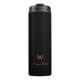 A modern, elegant monogram design with gold handwritten minimalist script typography and sans serif block typography on an elegant black background. The monogram and name can be easily personalised.