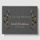 Beautiful and modern memorial / funeral guestbook features black and gold leaves on curved vines on dark grey background with gold coloured customisable text.