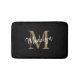 Modern Black Gold White Monogram Script Elegant Bath Mat