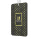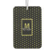 Modern Black, Golden Circle Pattern Monogram Air Freshener. Golden Circle Pattern on a black background with a beautiful monogram letter and name that you can change with your own name or business name.