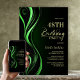 Invite your friends and loved ones with this modern black and green birthday party invitation. The customisable text area in this invitation template allows you to effortlessly include all the necessary details for your special birthday celebration, including the guest of honour's age, date, time, venue, and RSVP information. A variety of paper types and corner styles are available for your unique invitations, along with the option to download if you prefer a digital format.