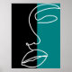 Modern Black, Green & White Facial Line Art Canvas Poster