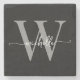 Modern Black Grey Custom Monogram Name Script Stone Coaster