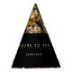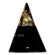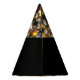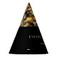 Modern and sparkly New Year paper party hat featuring golden glitter on a black background. Perfect for adding a touch of luxury to your party This sparkling paper party hat captures the spirit of New Year's Eve, brings sparkle and sophistication to any occasion, and is easy to customise. Discover unique, custom gold glitter products that make a statement and add radiance to your celebrations.