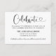 Modern black and white (colours can be modified) wedding reception enclosure card features a stylish black typography design with chic calligraphy script and a heart accent. The simple and elegant custom text that can be personalised to invite guests to "Celebrate" the wedding, including the reception location name, address, and arrival time.