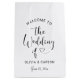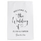 A premium custom wedding gift bag showcasing "Welcome to the Wedding of" in flowing black heart script with a charming heart flourish, printed on both sides. The couple's names and wedding date complete the design in crisp black typography. All text is fully customisable. A versatile wedding welcome bag for out-of-town guests, ideal for filling with itineraries, snacks, and local goodies for hotel room arrivals.