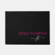 Modern Black Hot Pink Simple Script Monogram Name Doormat