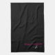 Modern Black Hot Pink Simple Script Monogram Name Tea Towel