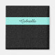 An elegant black on black leopard print magnet with an aqua stripe. This preppy and chic animal pattern can be personalised by adding the name of a modern woman.