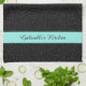 An elegant black on black leopard print towel with an aqua stripe. This preppy and chic animal pattern can be personalised by adding the name of a modern woman.