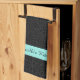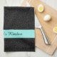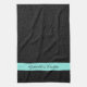 Modern Black Leopard Print Aqua Stripe With Name Tea Towel